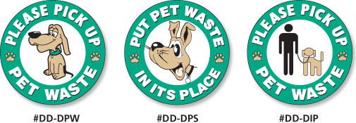 Pet waste is both an aesthetic and environmental problem.  Encourage the proper disposal of pet waste by putting an educational message where it will do the most good.  Our colorful Doo Dot das Curb Markers can be installed on just about any flat non-soil surface using your choice of das Curb Marker Adhesive.  Because they’re das Curb Markers you know that they’re durable.  Doo Dots will serve as a visible yet unobtrusive reminder to pet owners for years to come.