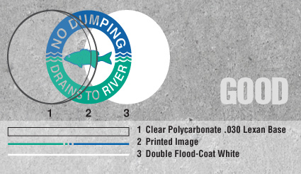 Back Printing Additionally every das Curb Marker is imprinted with a part number and a lot number for quality control.